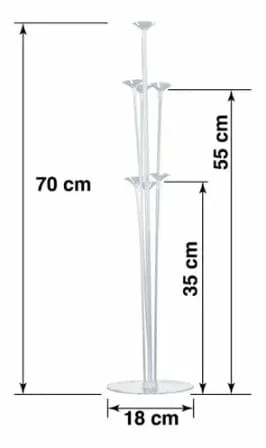 - Altura ajustable: Incorpora 3 diferentes medidas de varita transparente: 3 chicas de 35 cm, 3 medianas de 55 cm y 1 grande de 70 cm, permitiendo variar la altura de los globos.