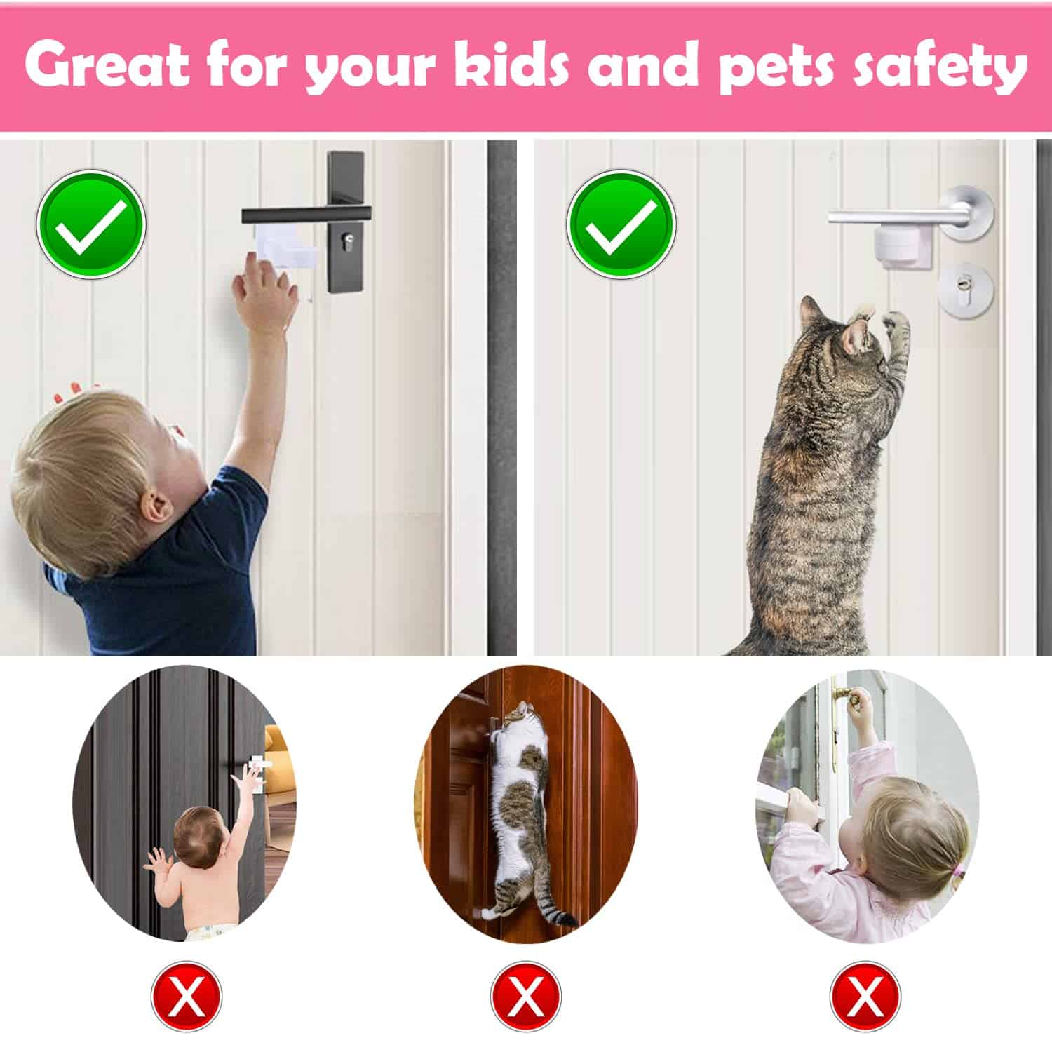 Cerraduras de manija de puerta a prueba de niños, paquete