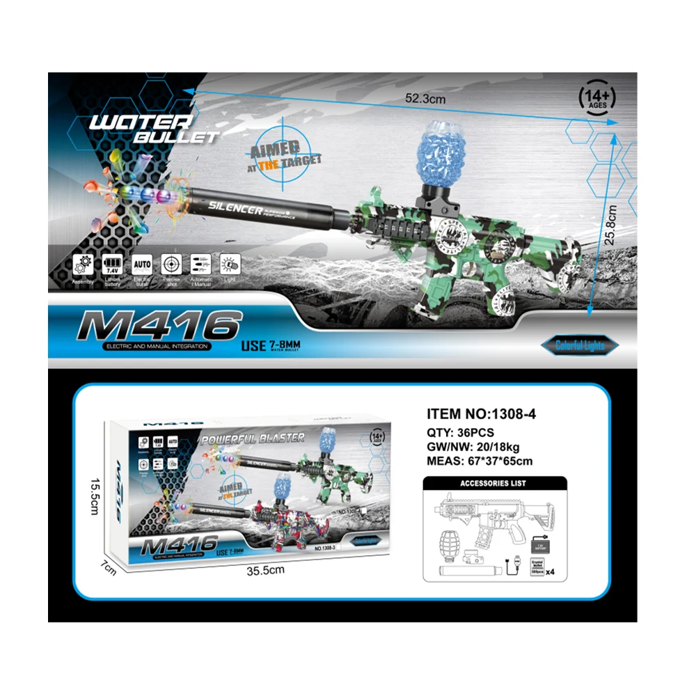 Pistola de hidrogel tipo m416 con accesorios y diseño de grafiti