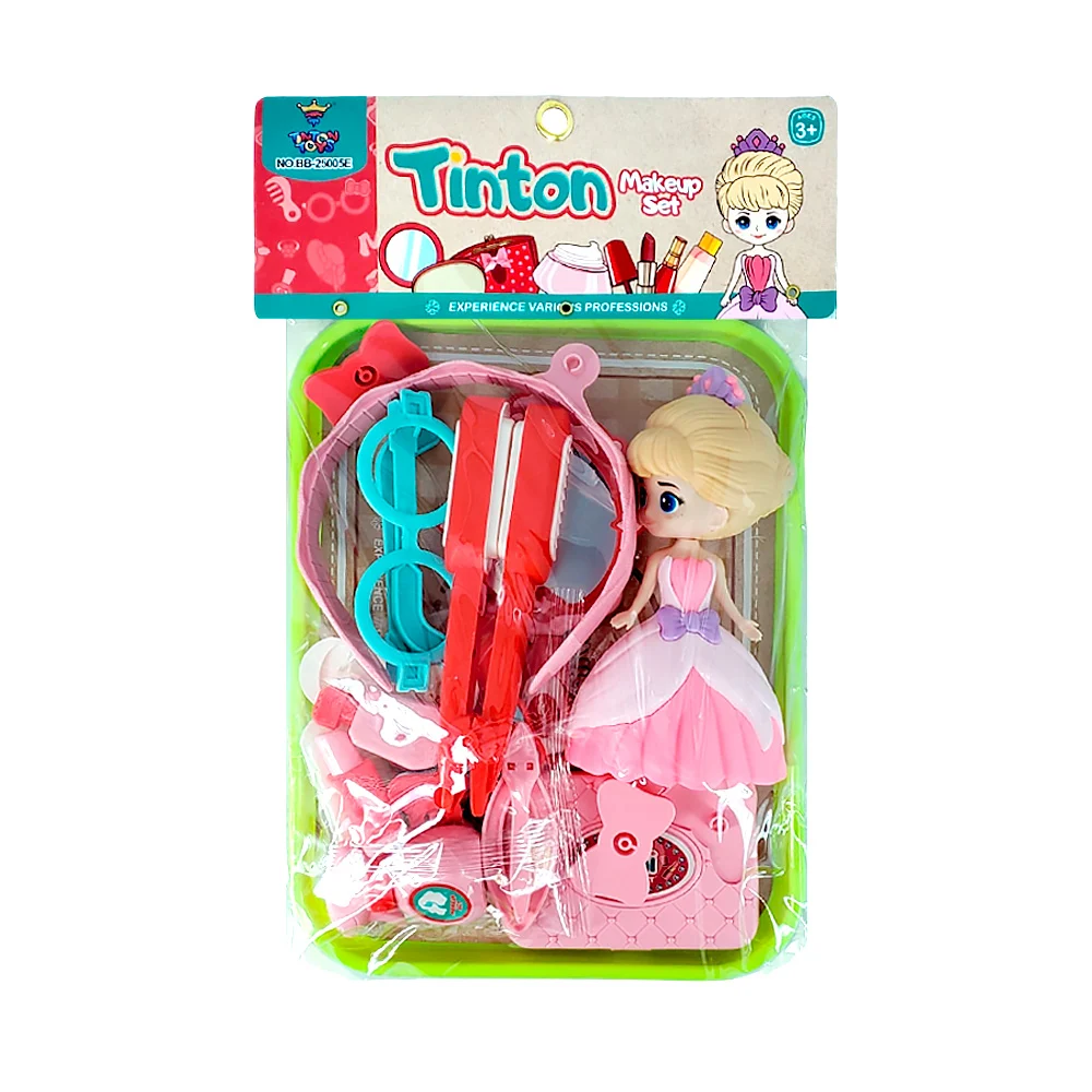 Set de muñeca tinton con base rectangular y accesorios, variedad de modelos