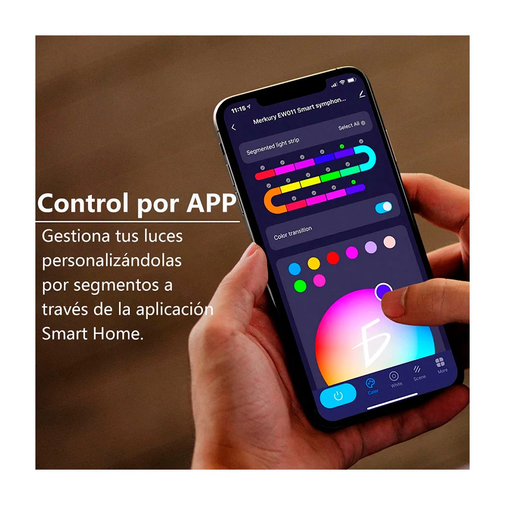 - Gama cromática RGB: Millones de combinaciones de colores disponibles con ajuste de brillo y saturación para crear escenas personalizadas.