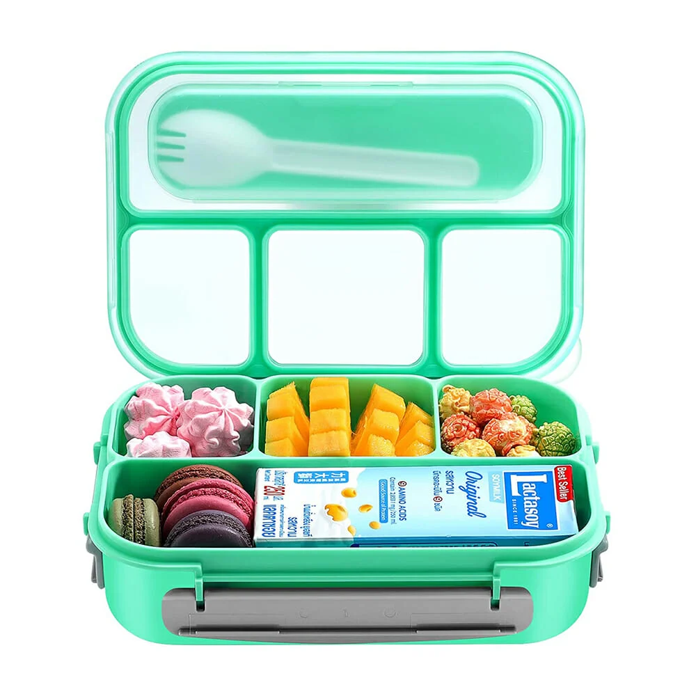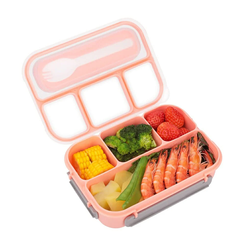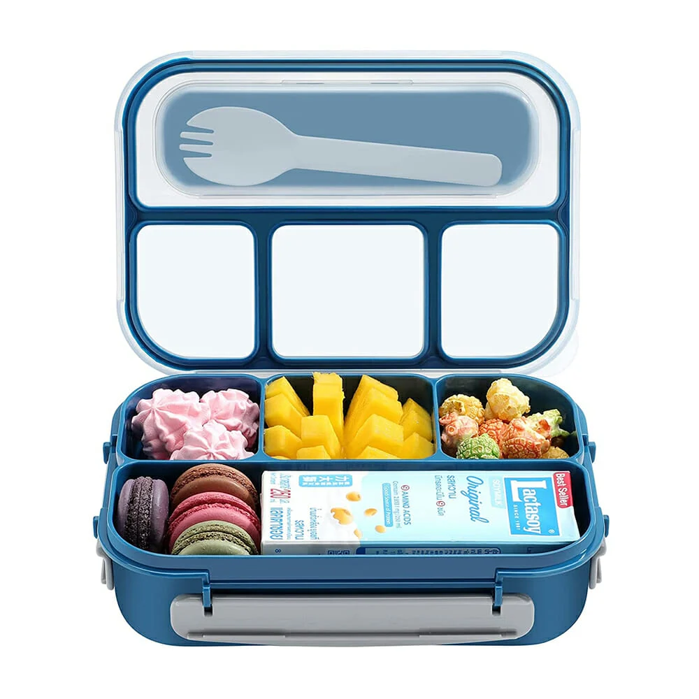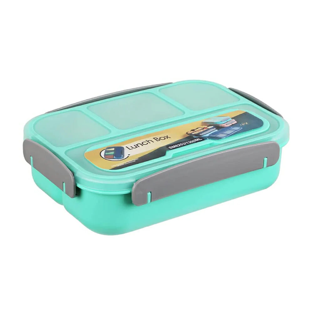 Tupper rectangular de plástico con 4 compartimientos, capacidad para 1300ml y tenedor, variedad colores / sm6253 / 1681387